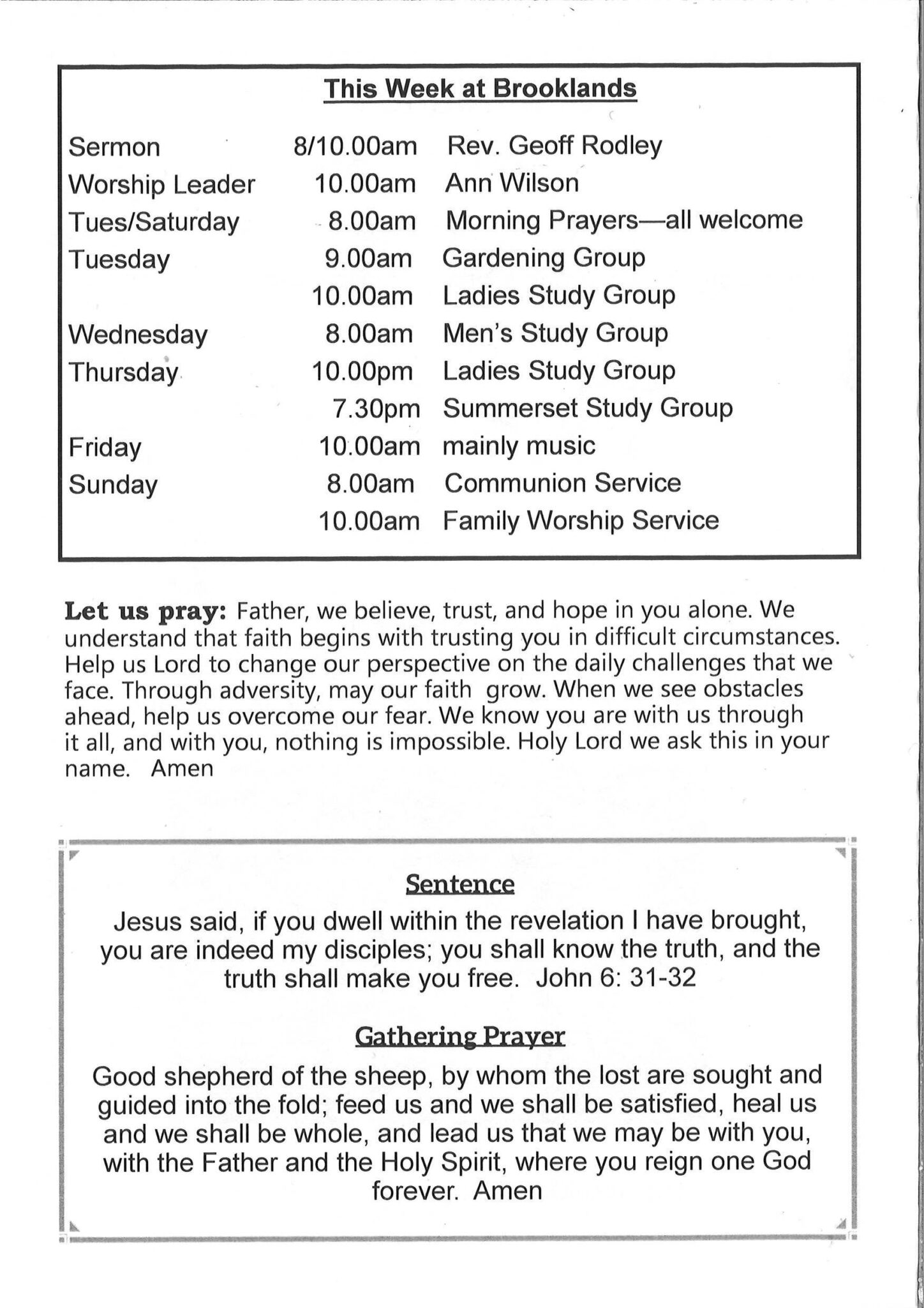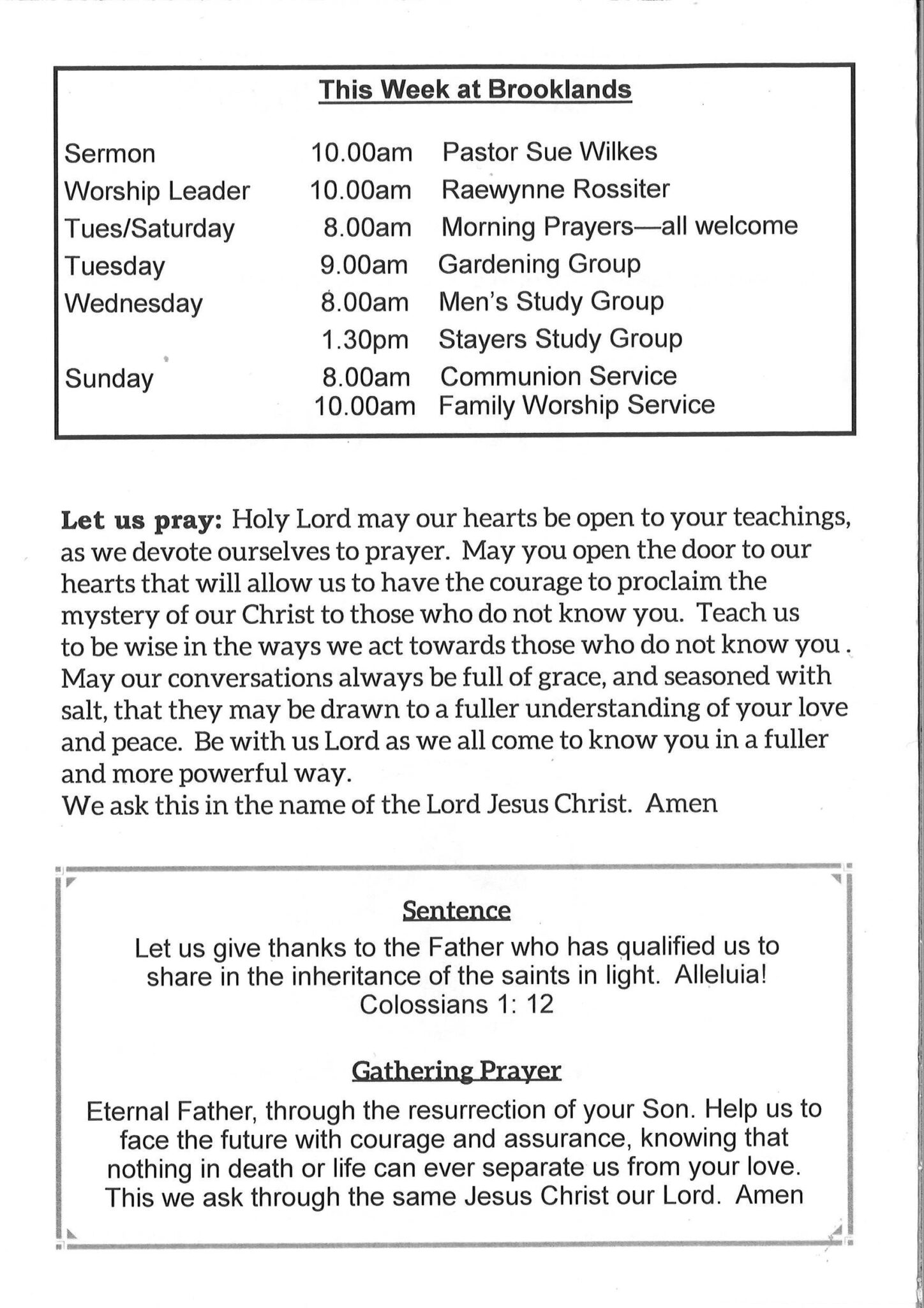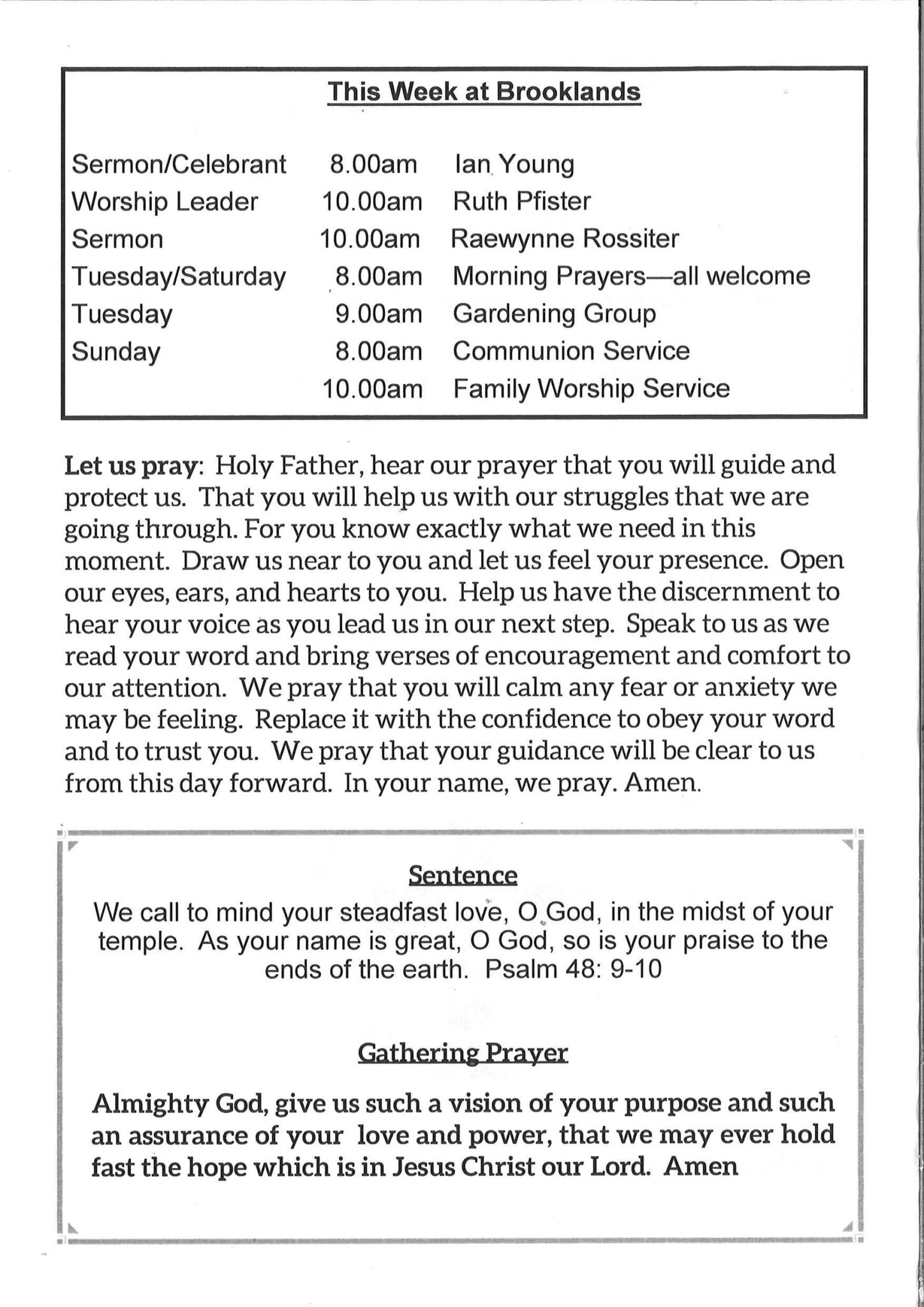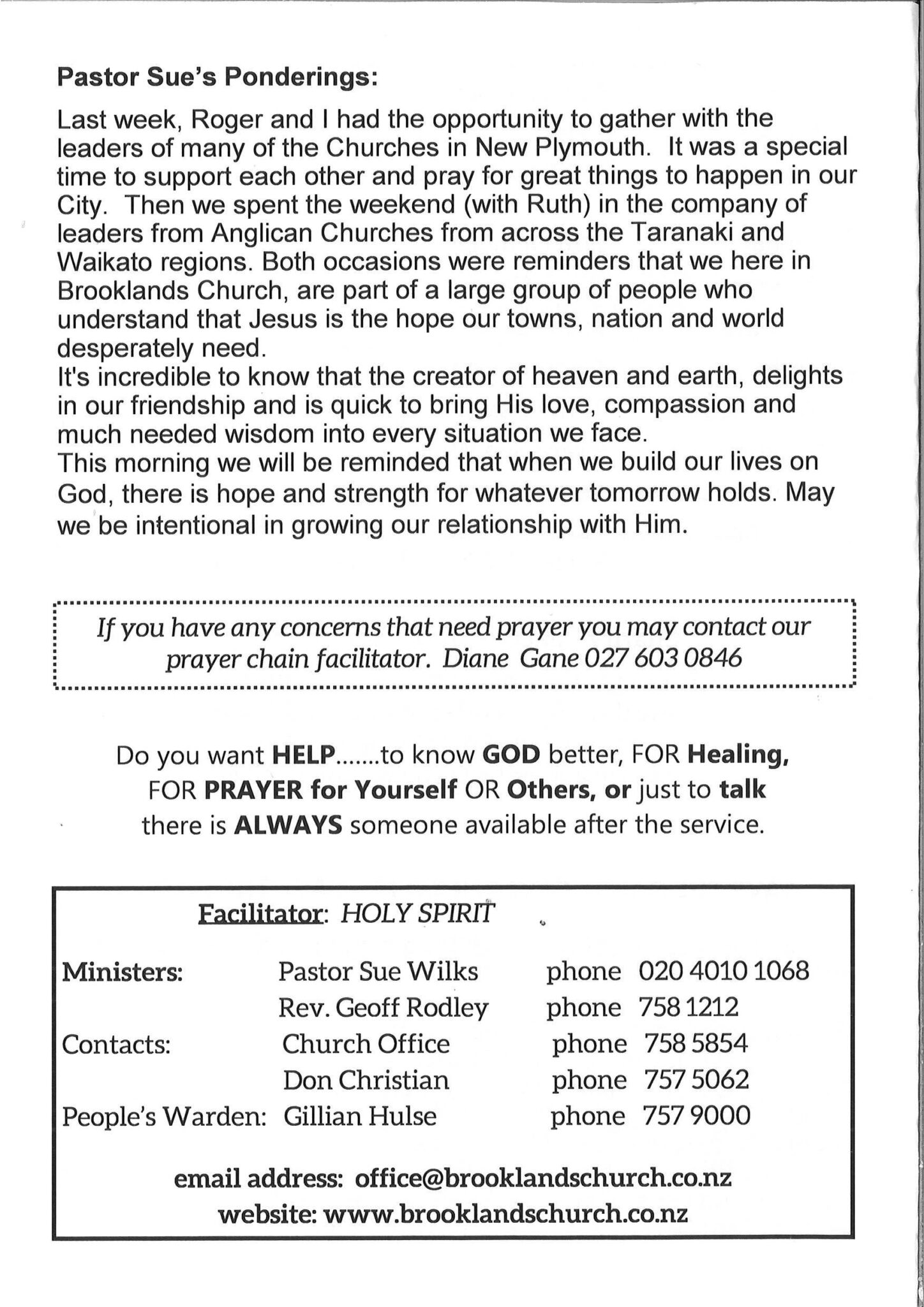 Brooklands is a co-operating Anglican and Presbyterian parish