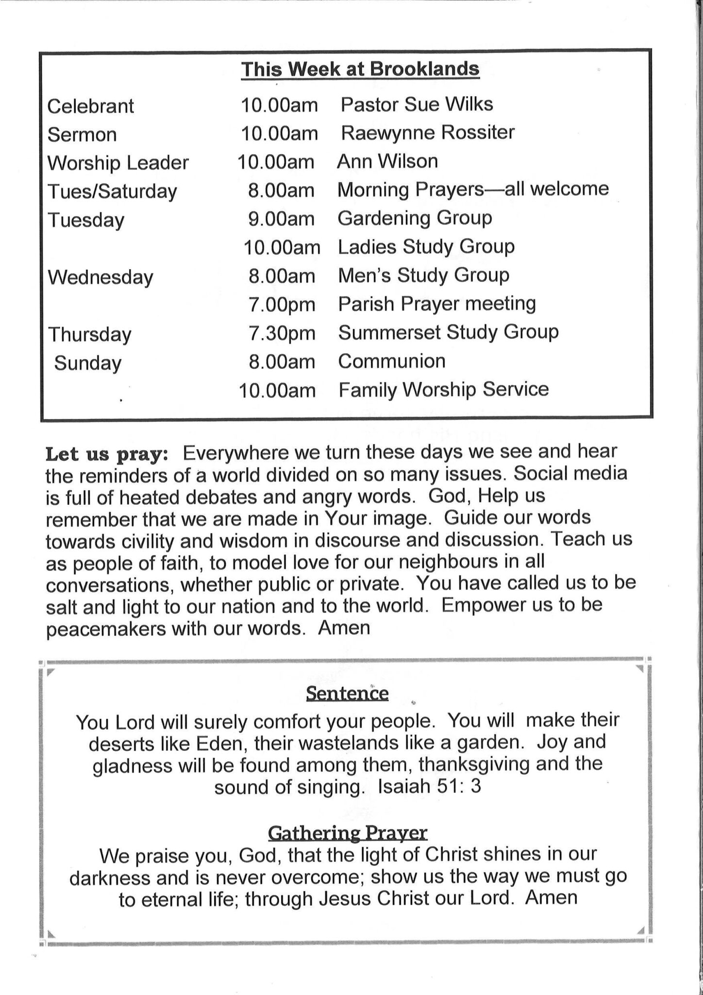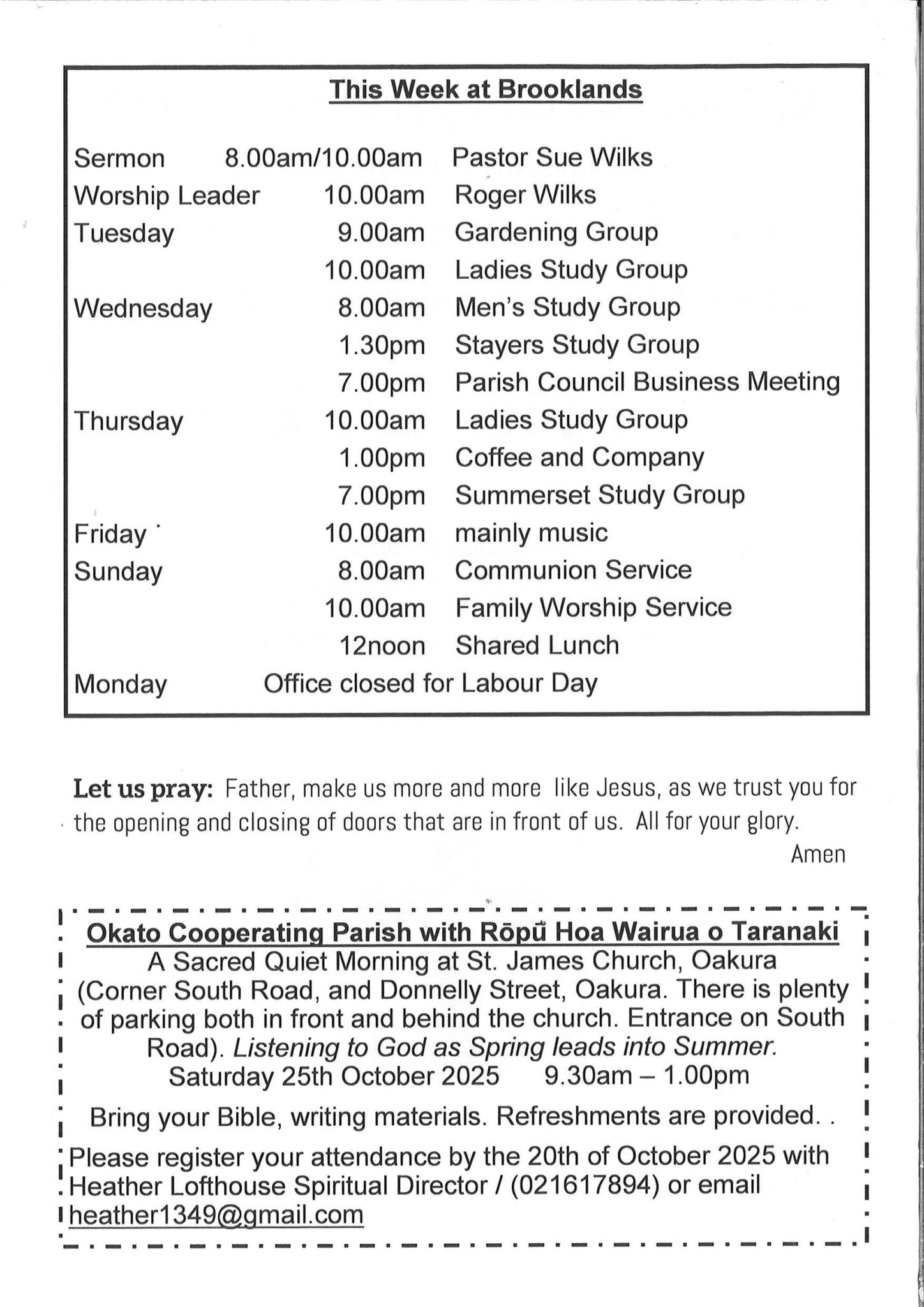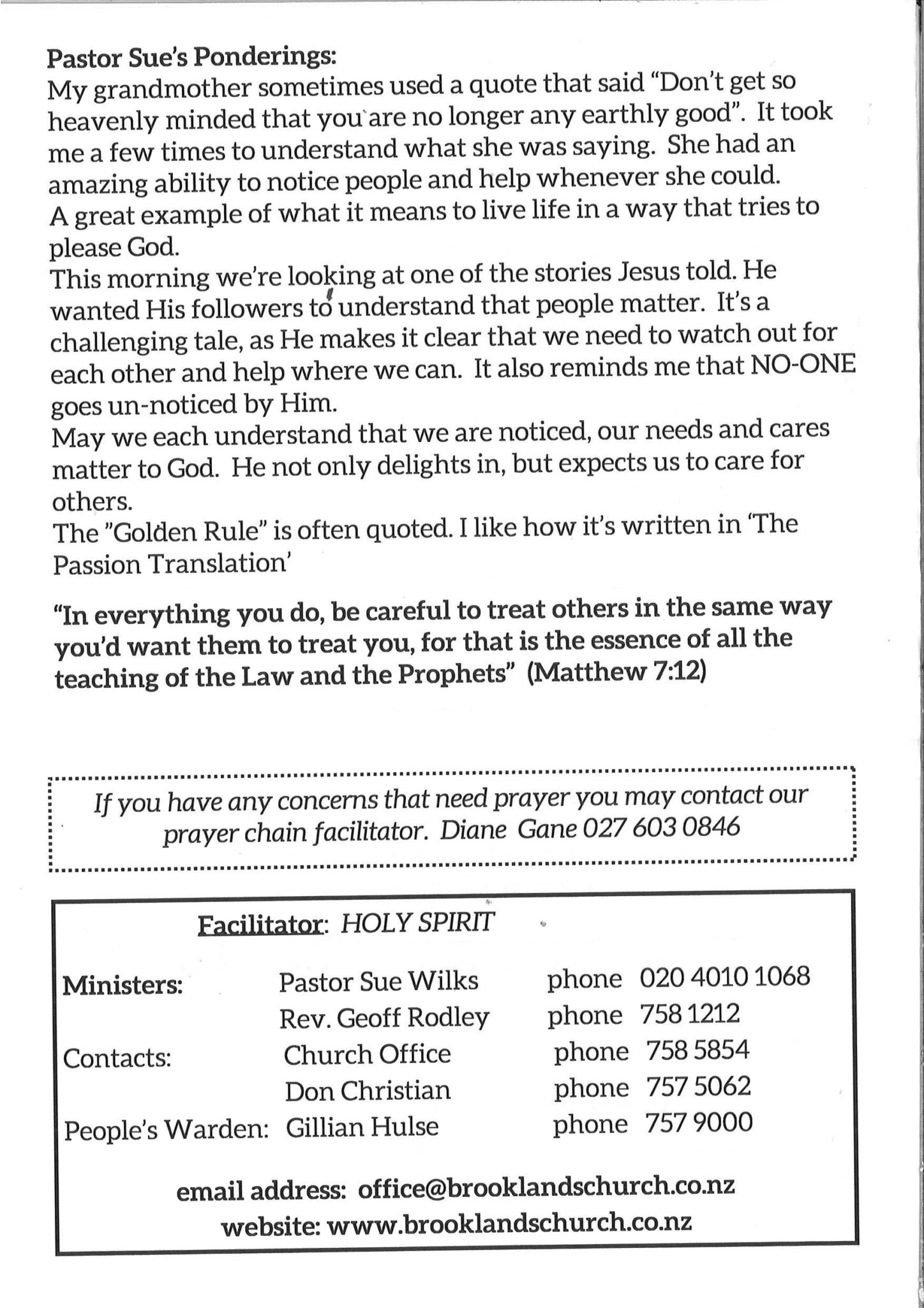 Brooklands is a co-operating Anglican and Presbyterian parish