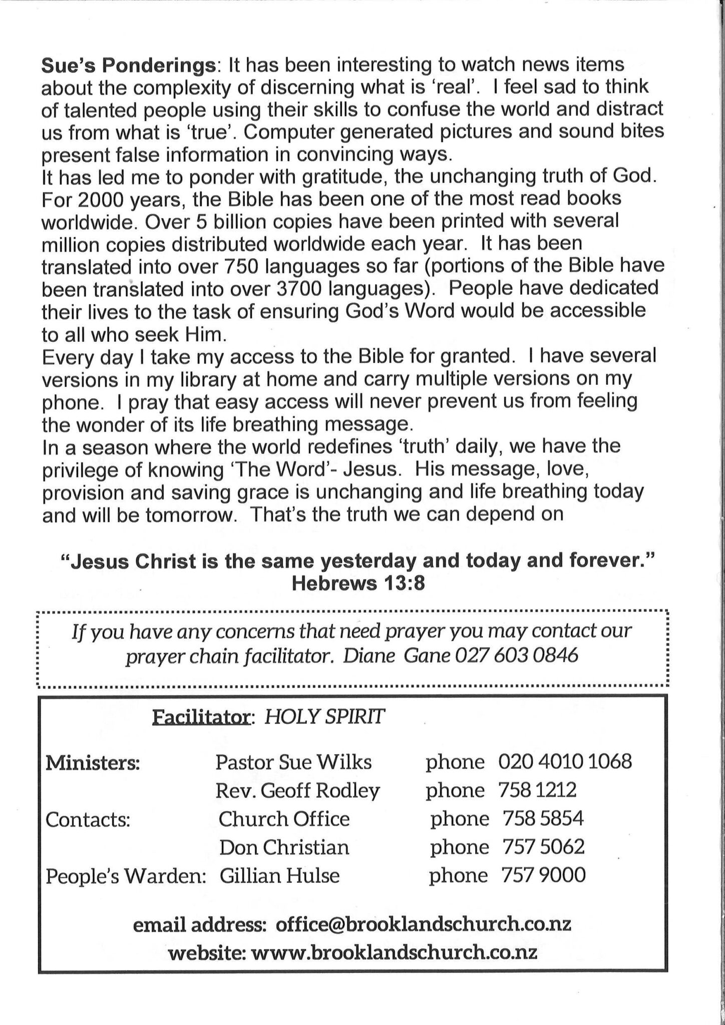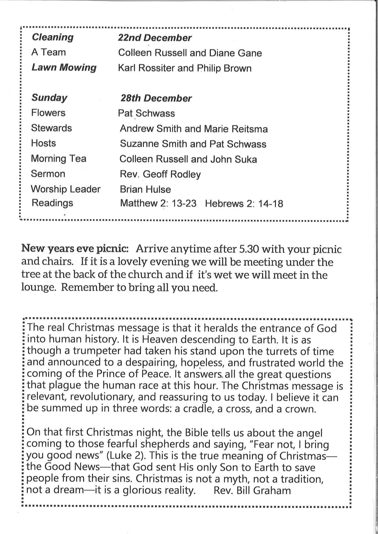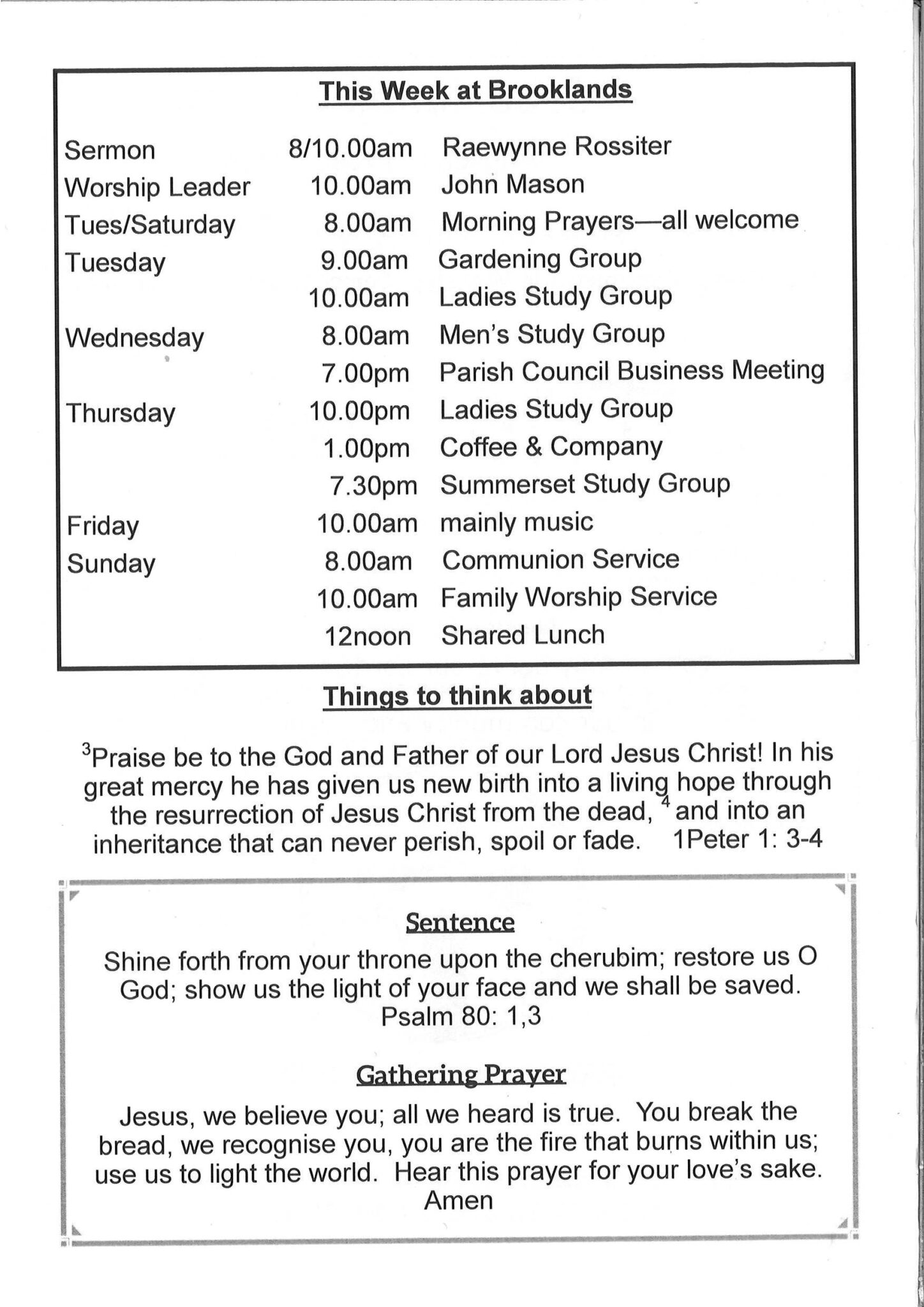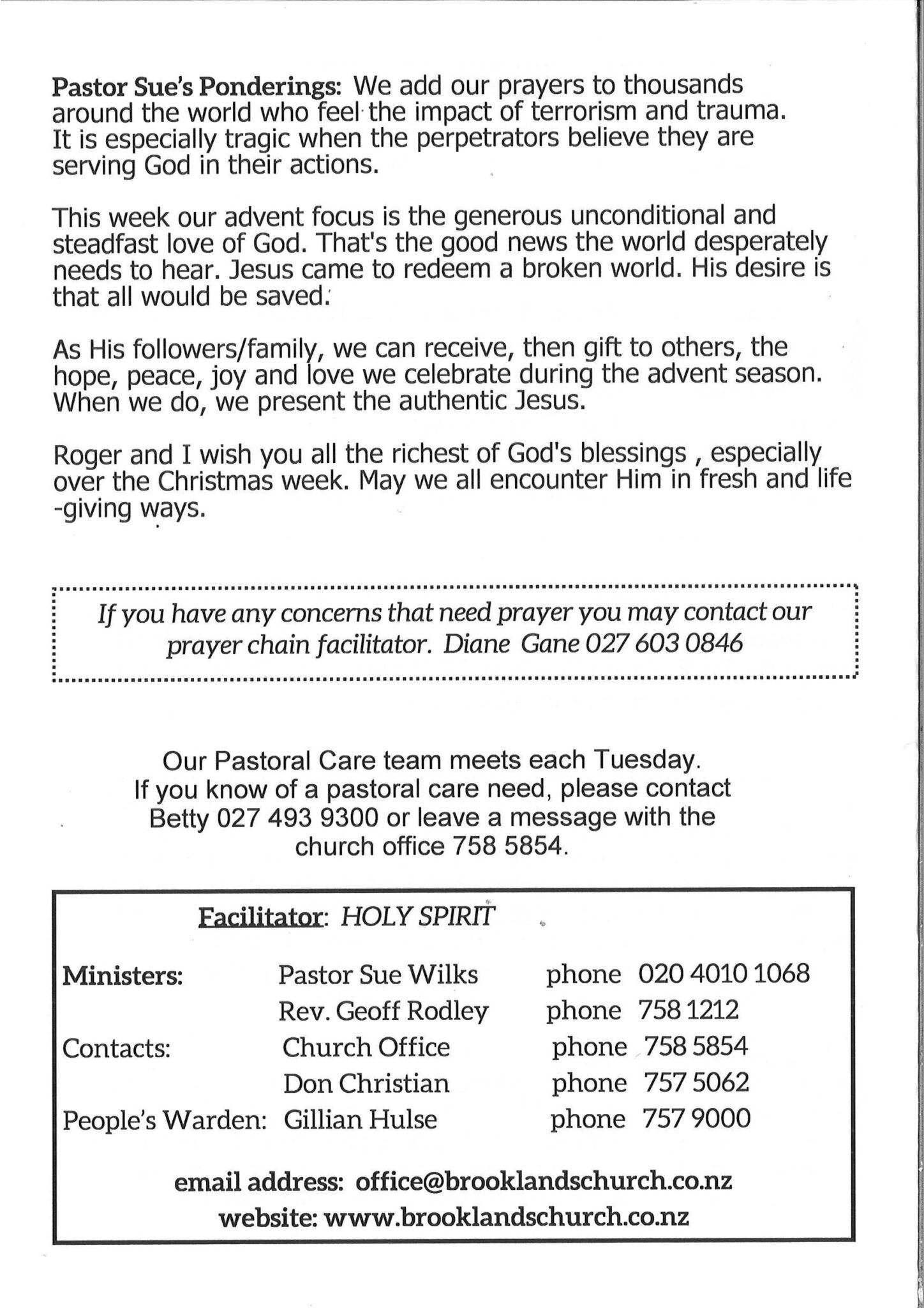 Brooklands is a co-operating Anglican and Presbyterian parish