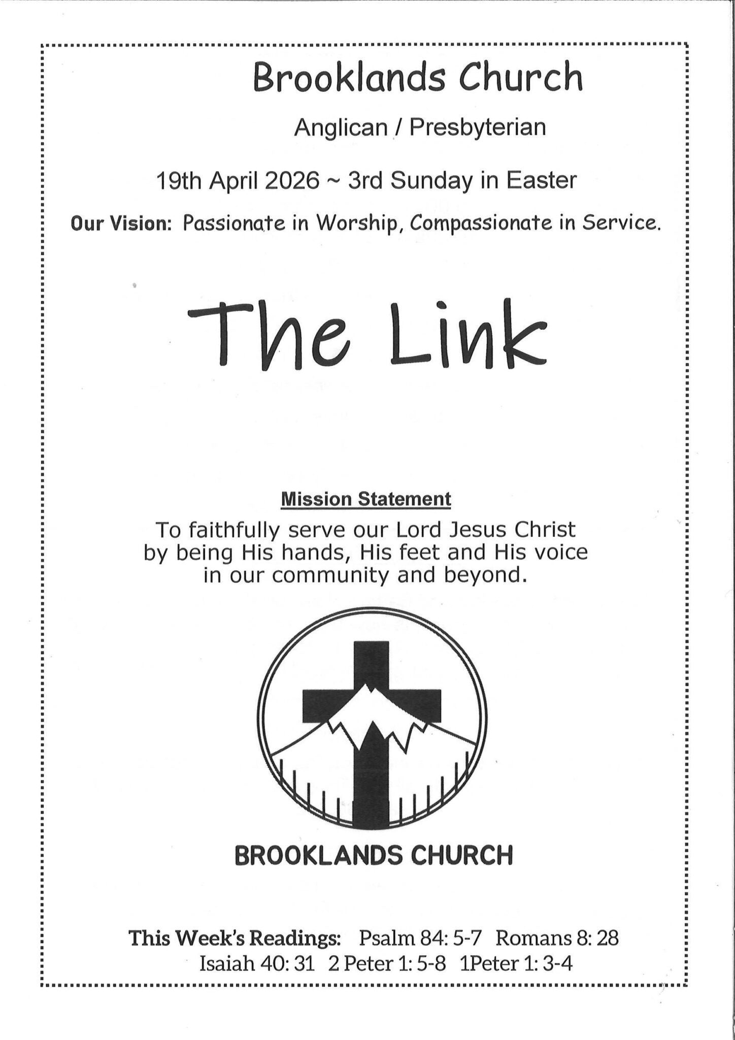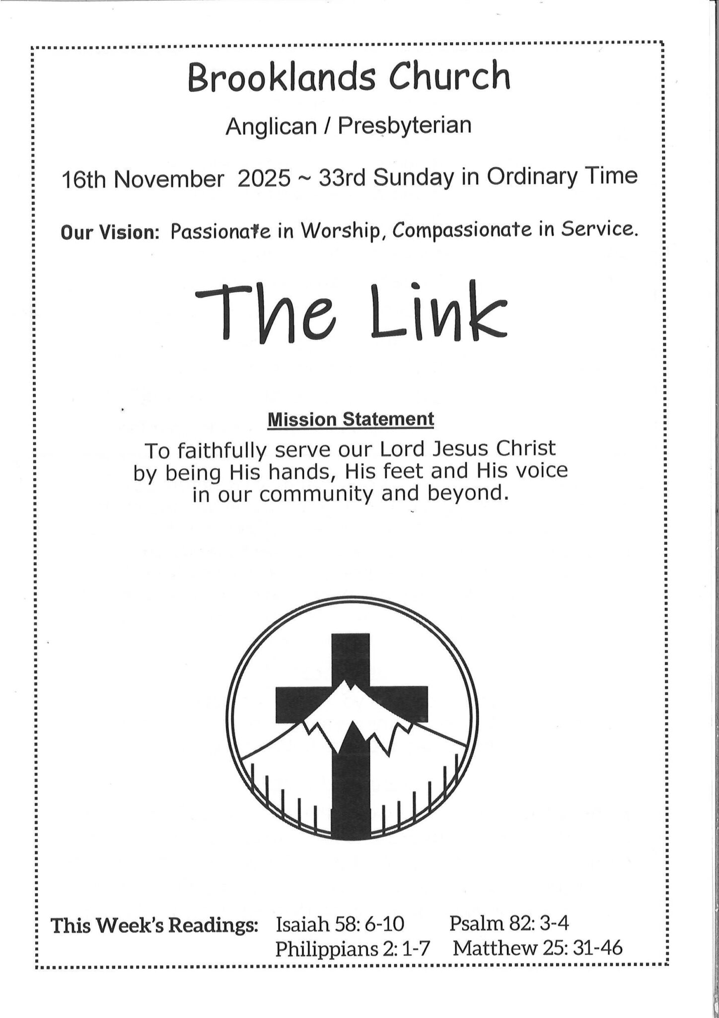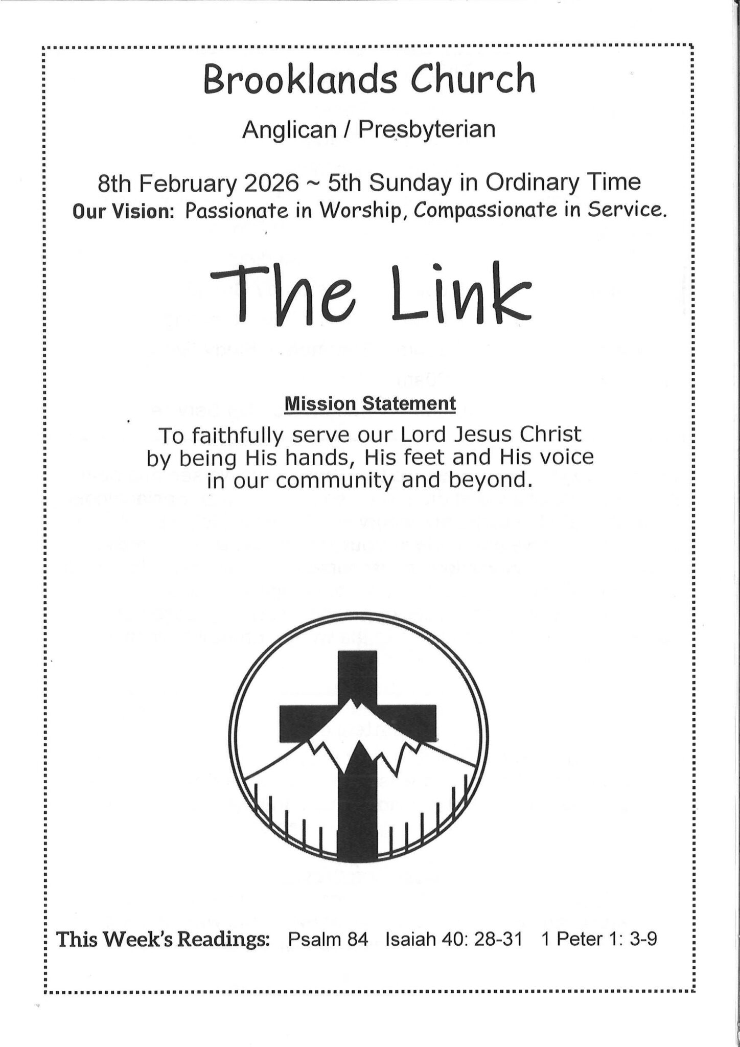 To faithfully serve our Lord Jesus Christ by being His Hands, His feet and His voice in our community and beyond.