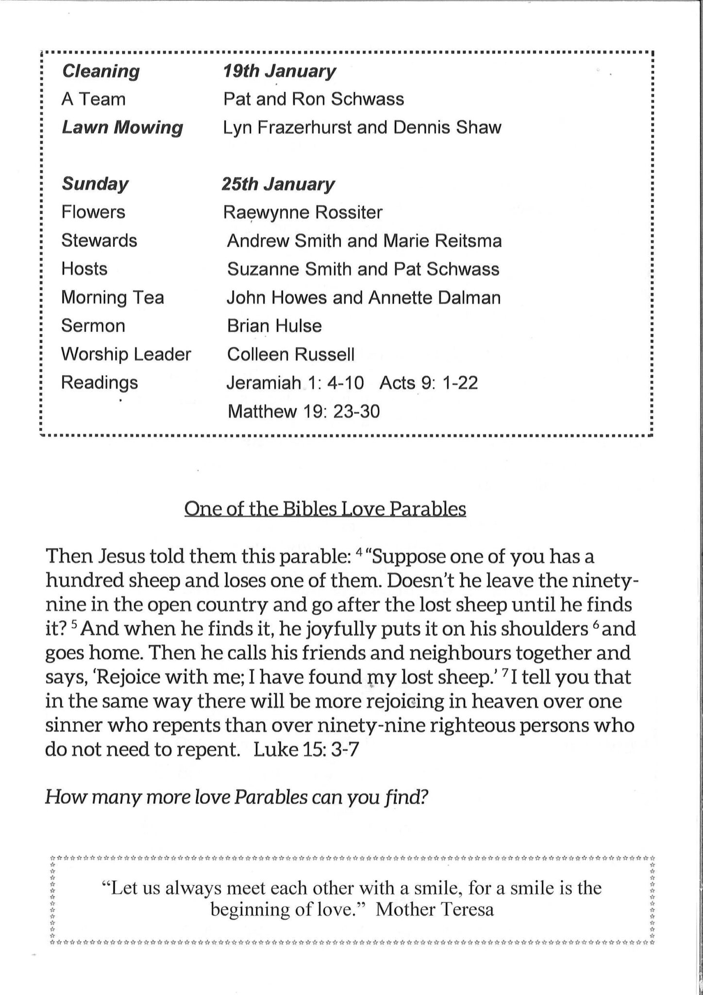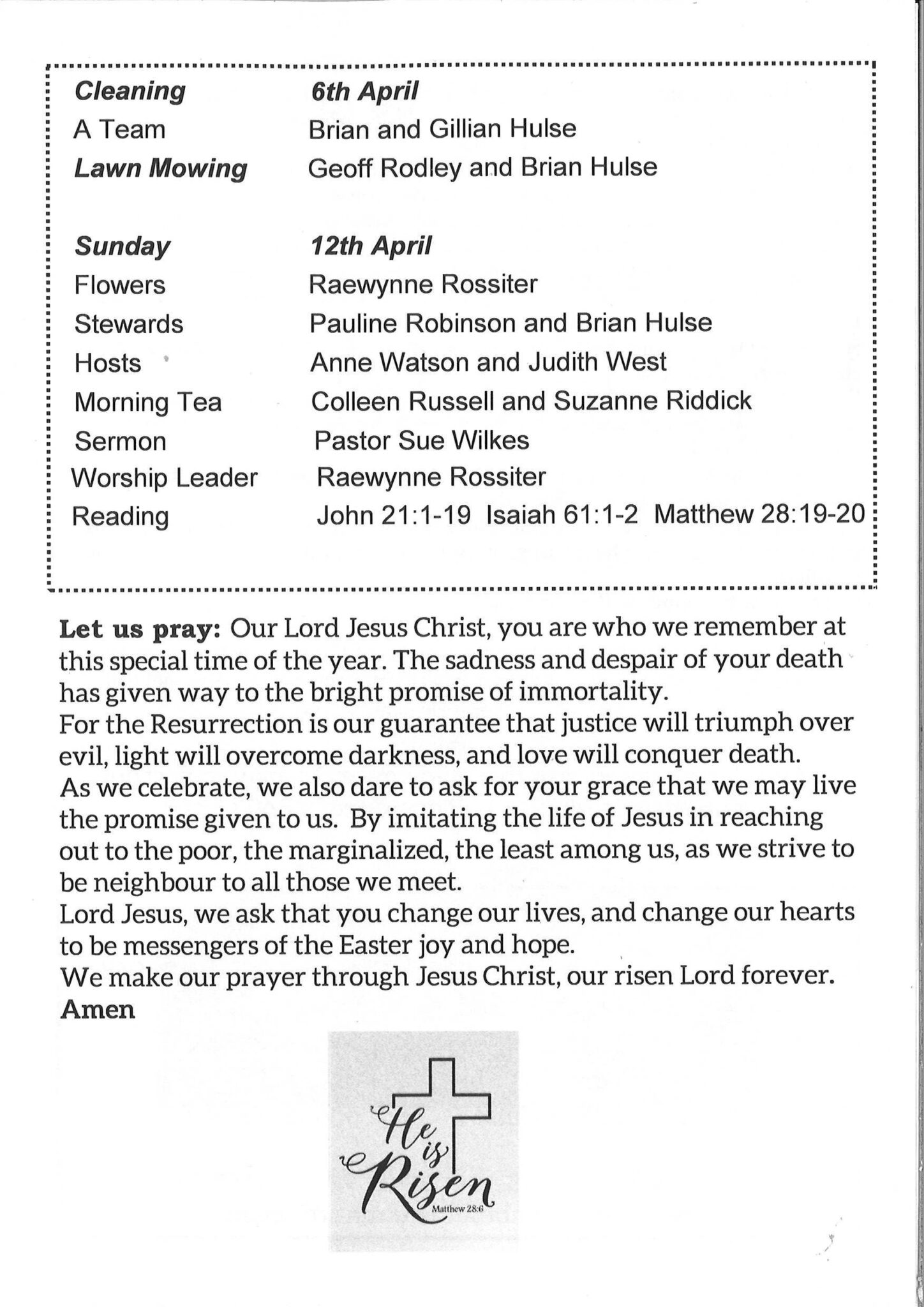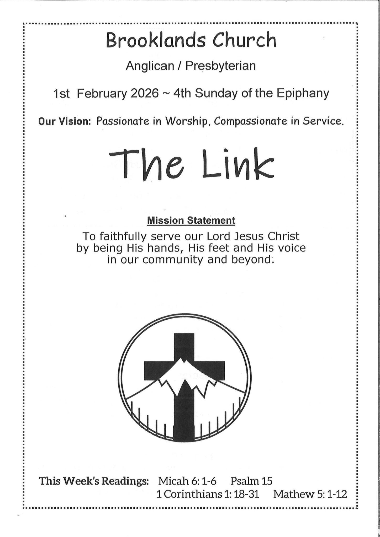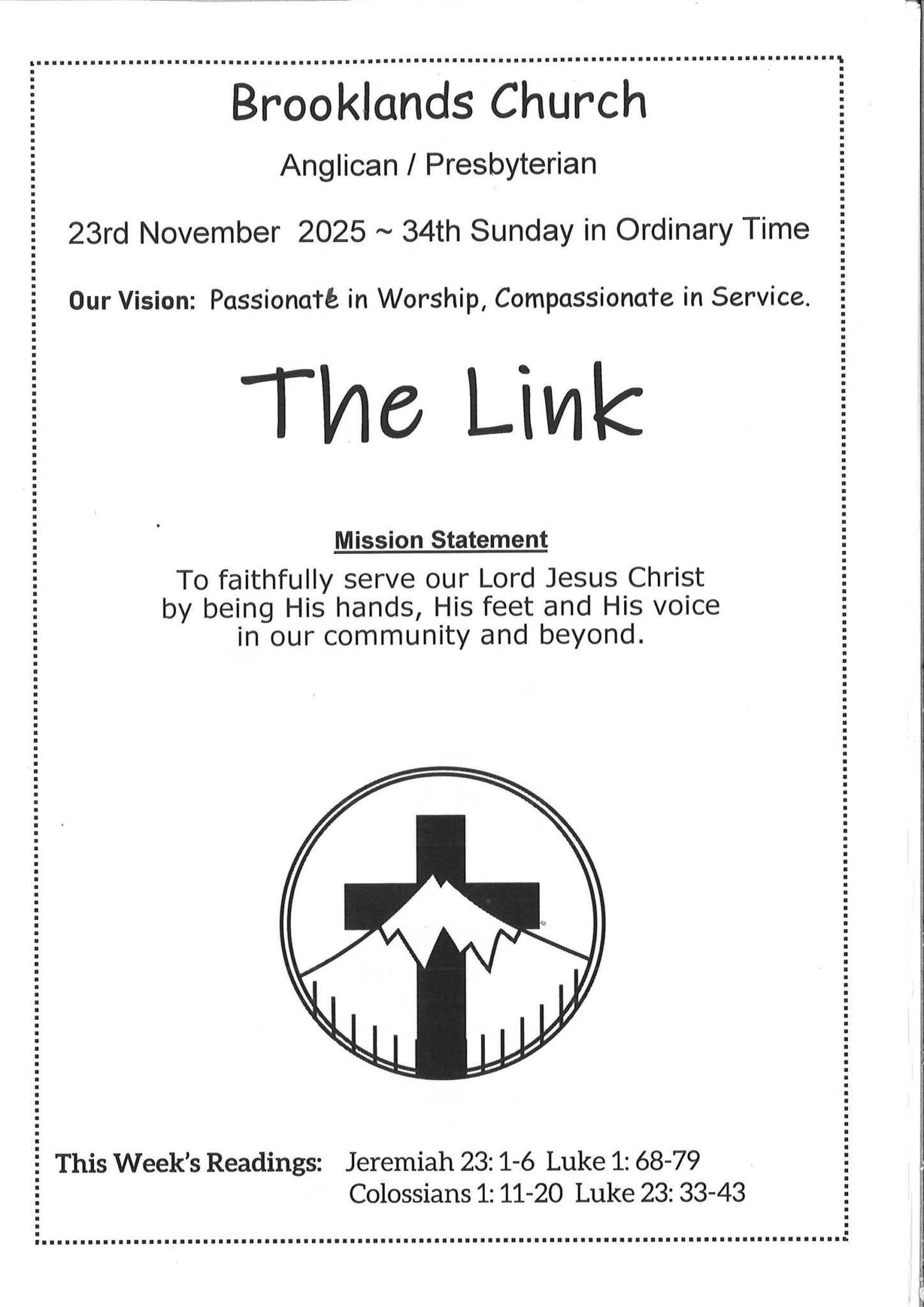 To faithfully serve our Lord Jesus Christ by being His Hands, His feet and His voice in our community and beyond.