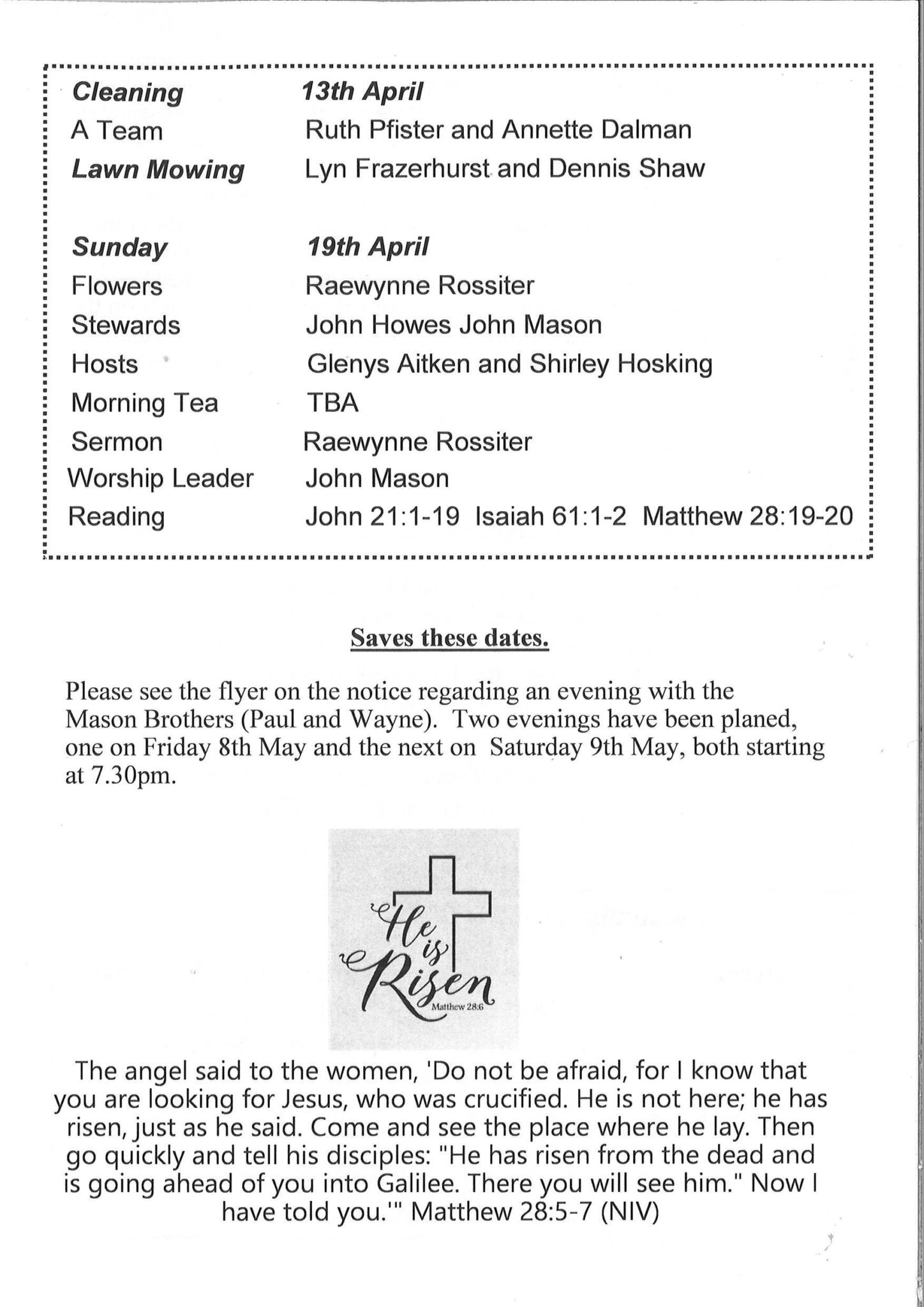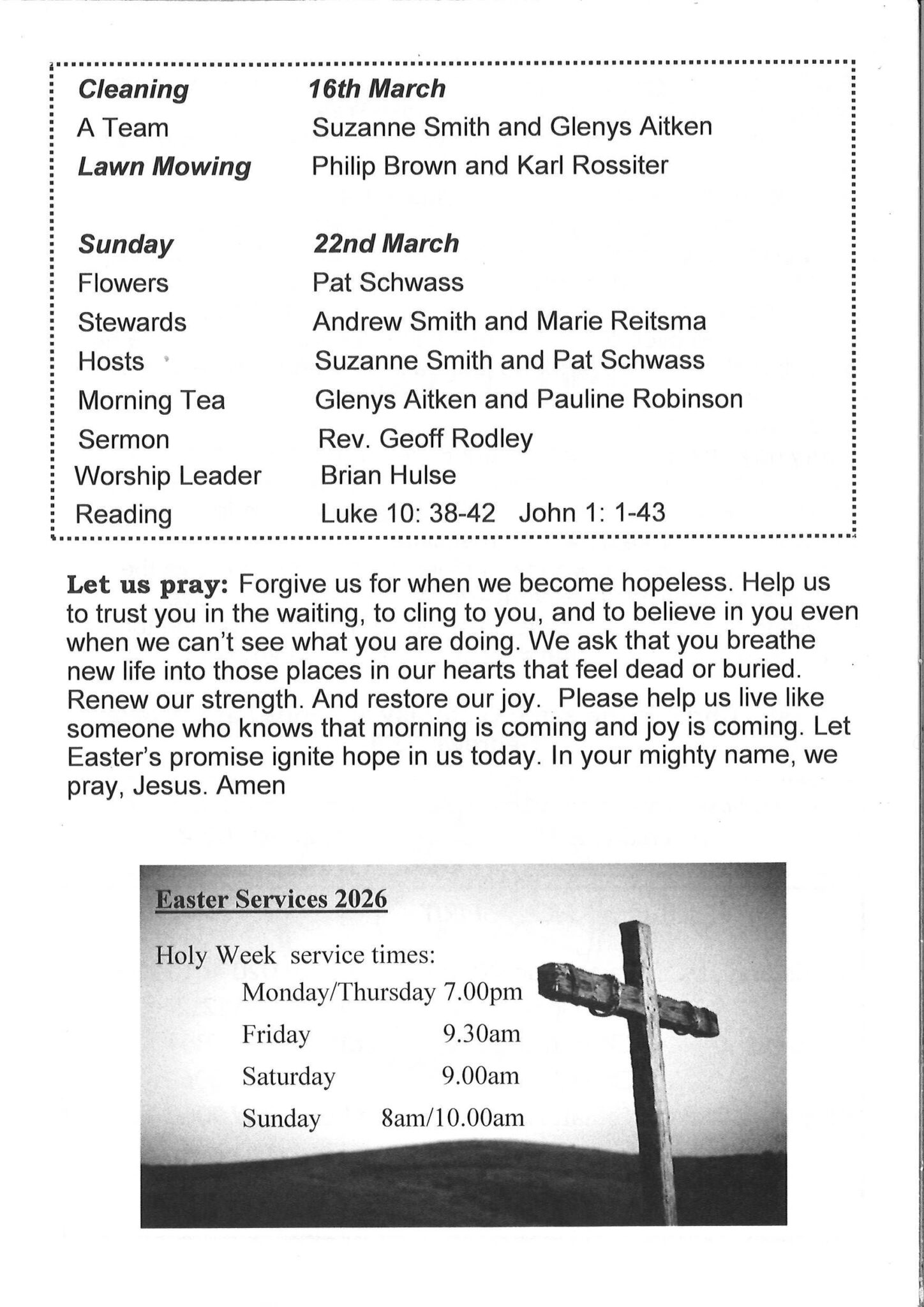 (Every second Sunday of the month the two Services combine at 10am for a family Communion Service)